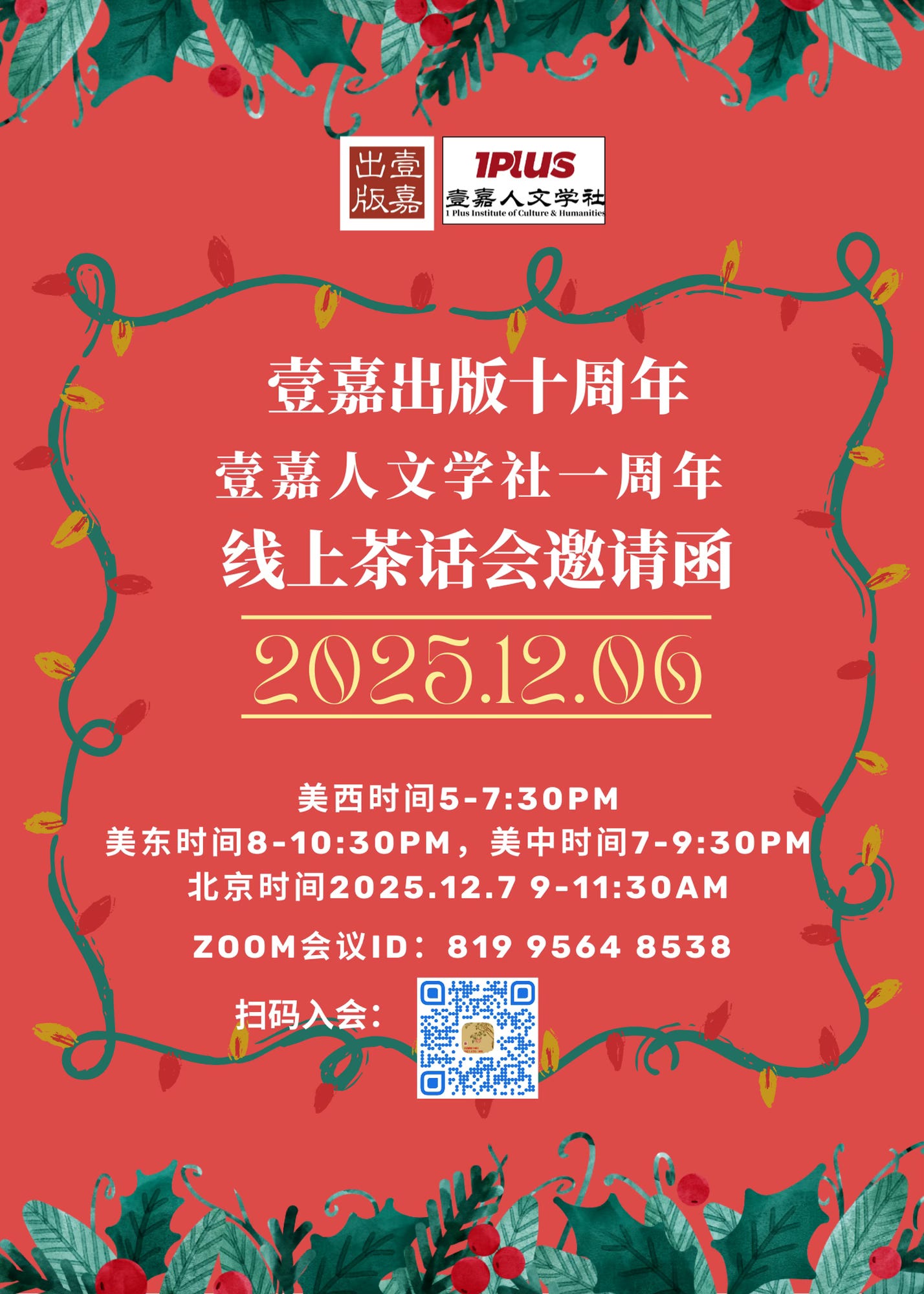壹嘉出版 10 周年啦!想邀请你,在冬夜里来一场“云端小坐”